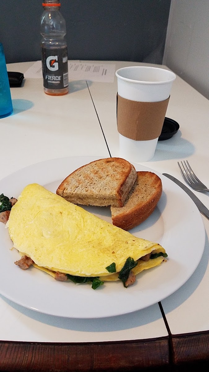 Nice breakfast spot! Eggs cooked perfectly with chicken sausage! Good cappuccino too!